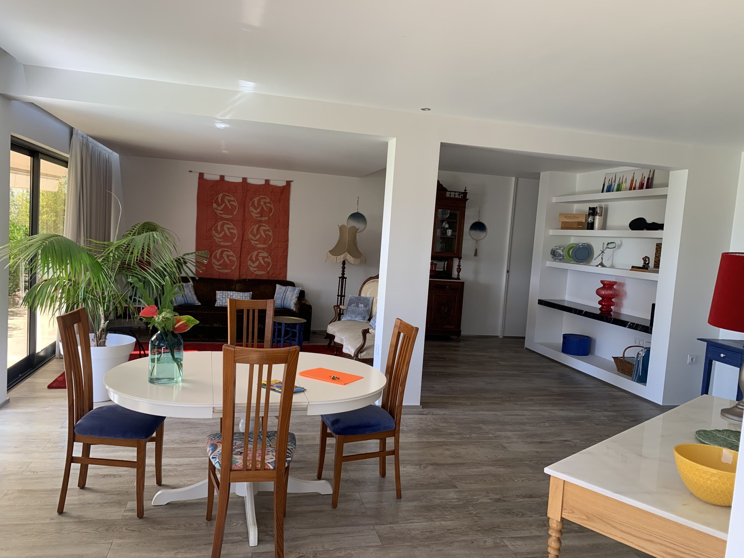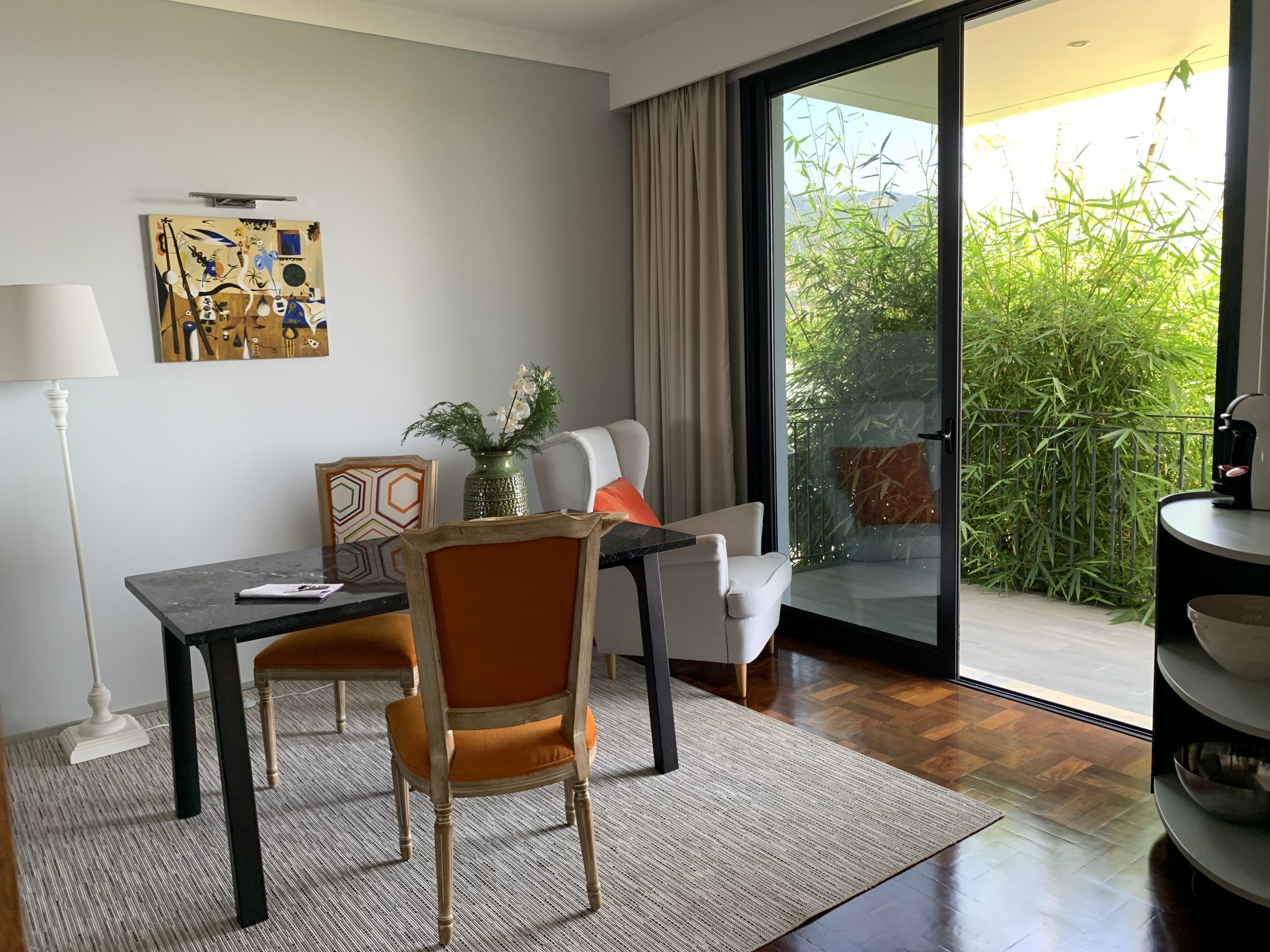 The deluxe studio apartment gives direct acess to the garden and offers a terrace in a very private area of the property. There is a separate dining area/kitchenette. Bathroom has a walk-in shower and bidet.