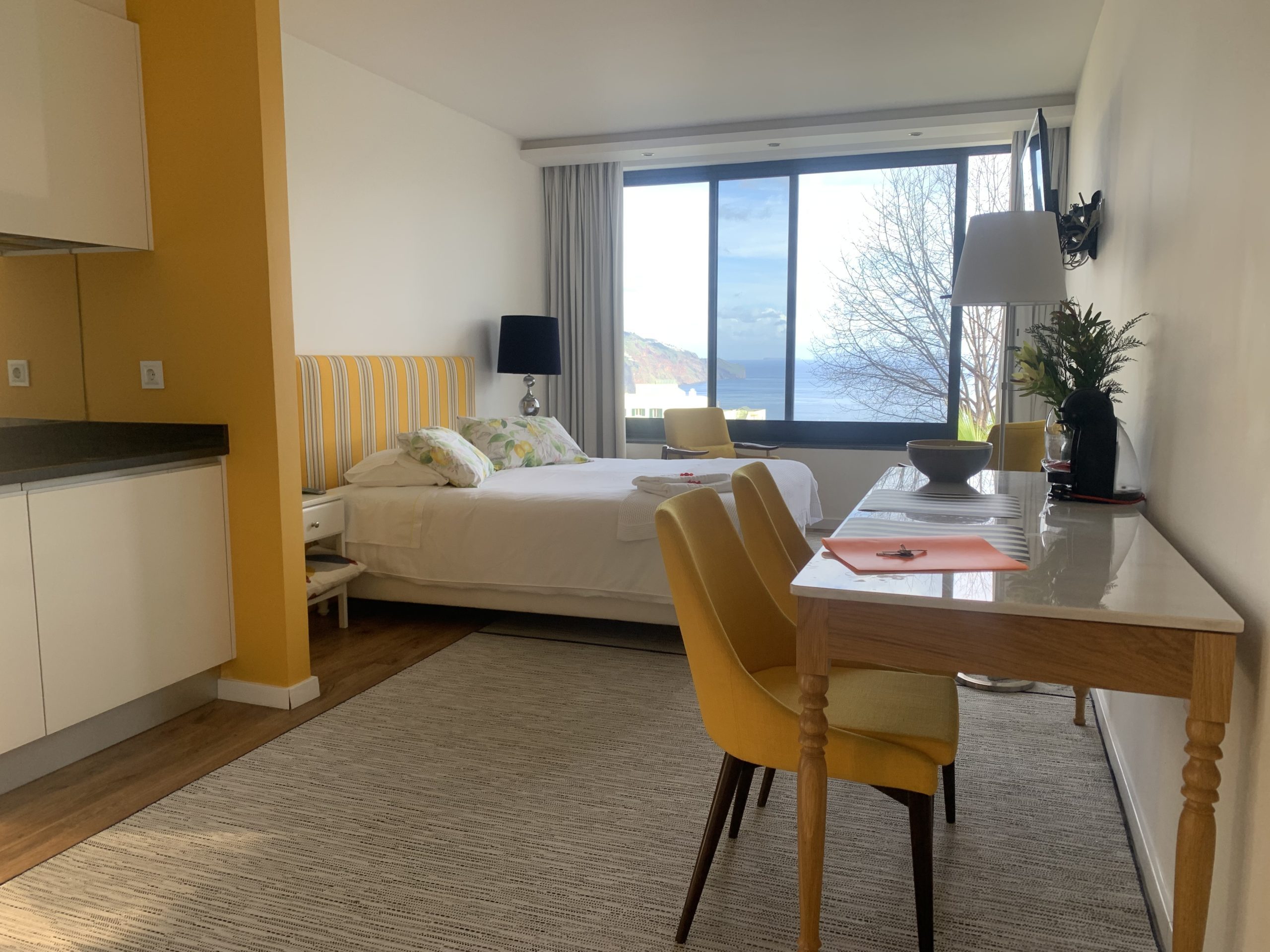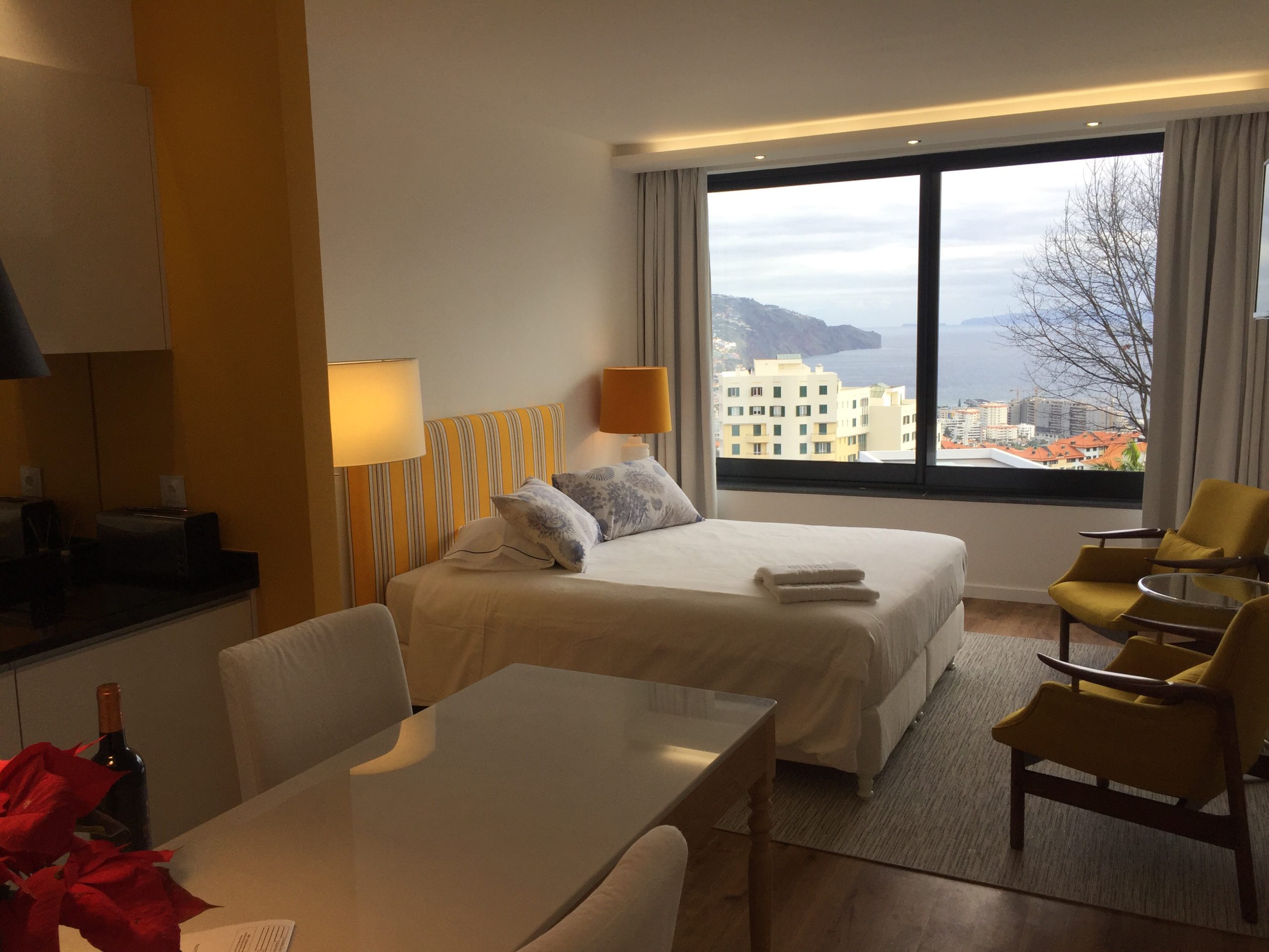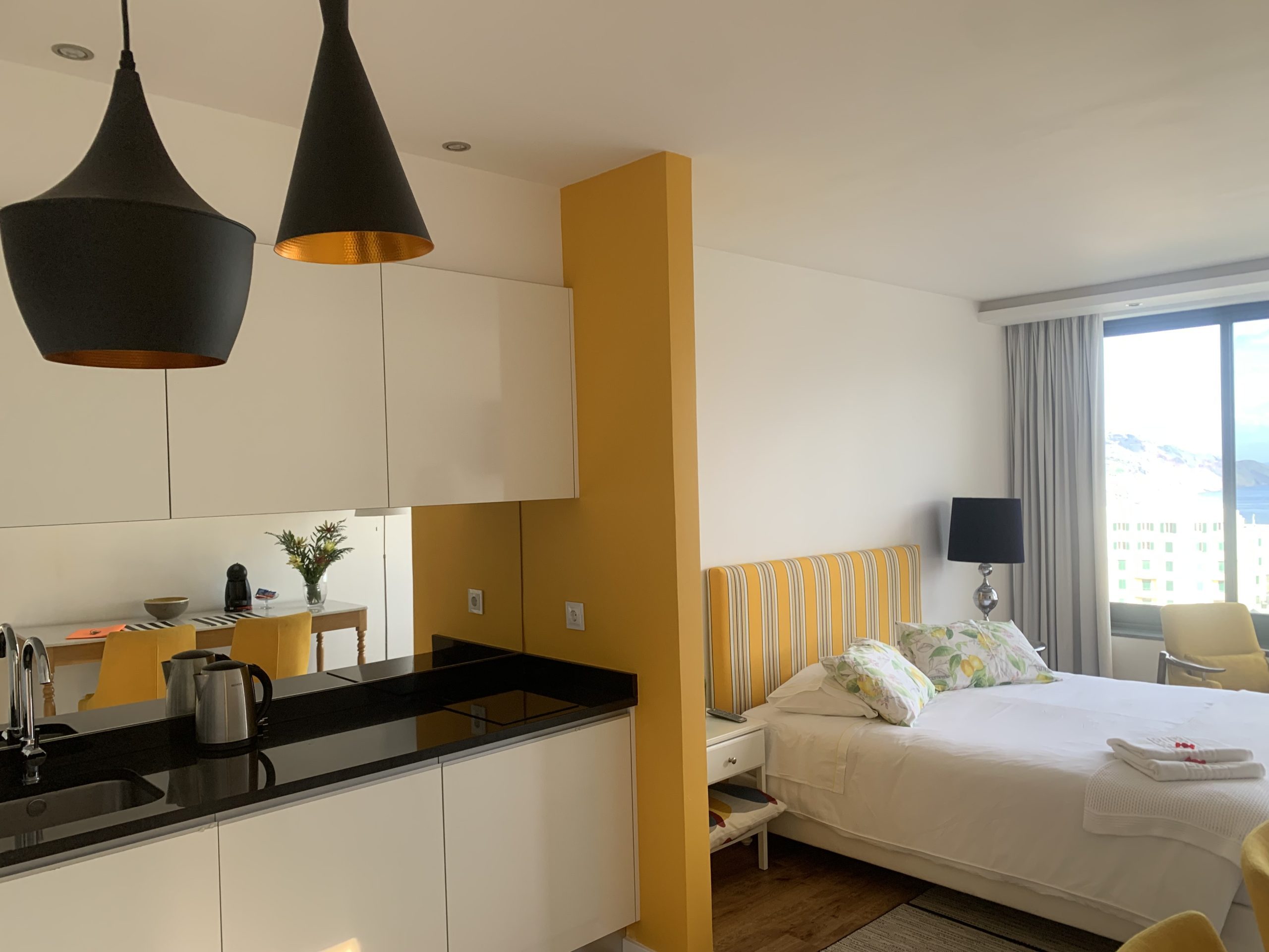 The superior studio apartment offers a big balcony with stunning views over the ocean and the city valley, separate dining/kitchen area and a king size bed. Private bathroom features a walk-in shower.