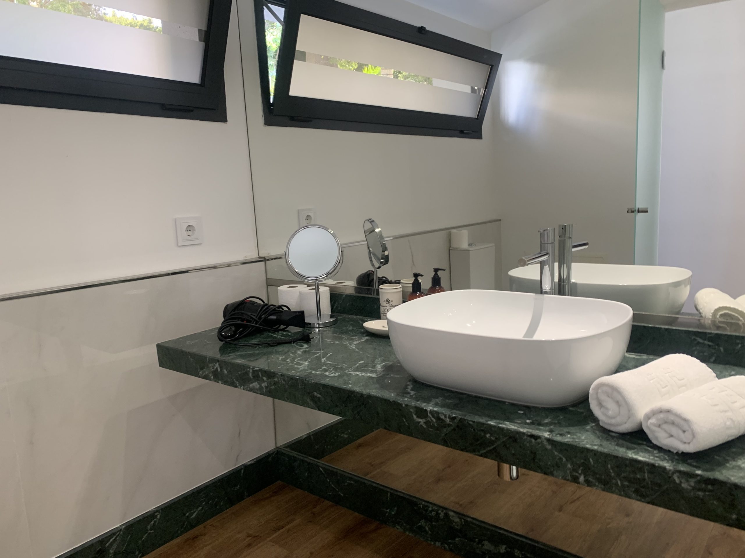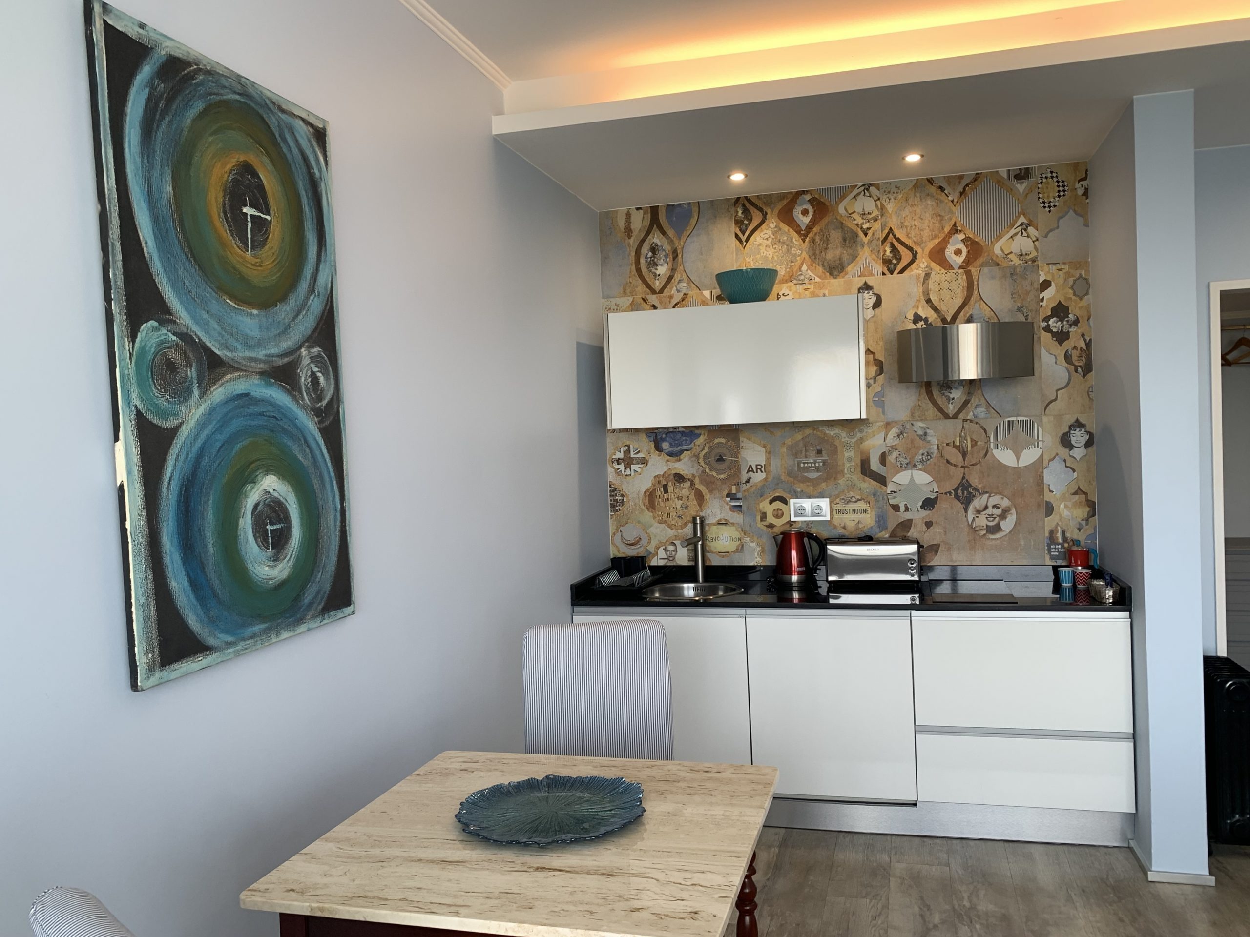 The double rooms feature a modern decor and a balcony with table and chairs. Located on an upper floor the view from the balcony is breathtaking. There are tea and coffee making facilities, a toaster and a mini-fridge.