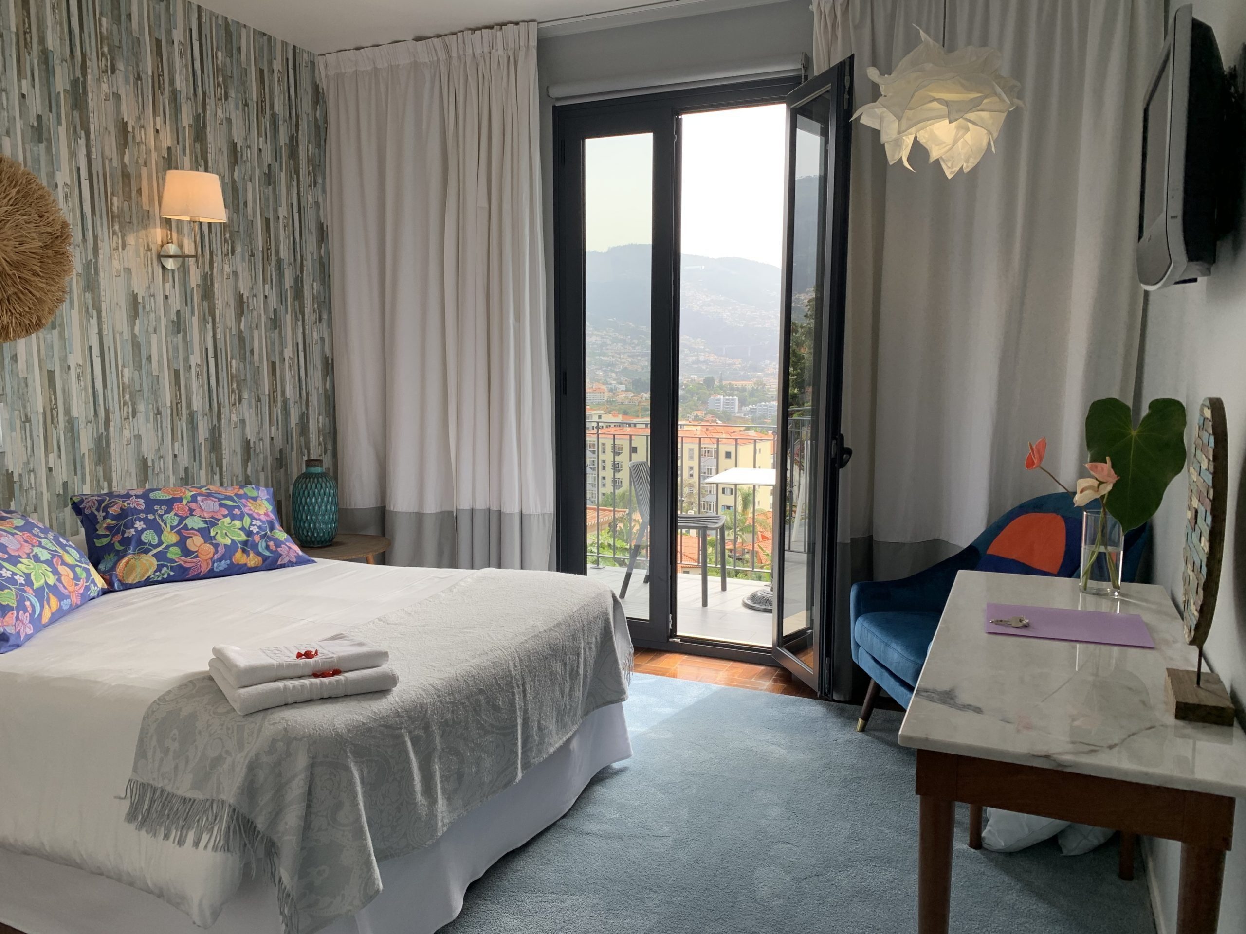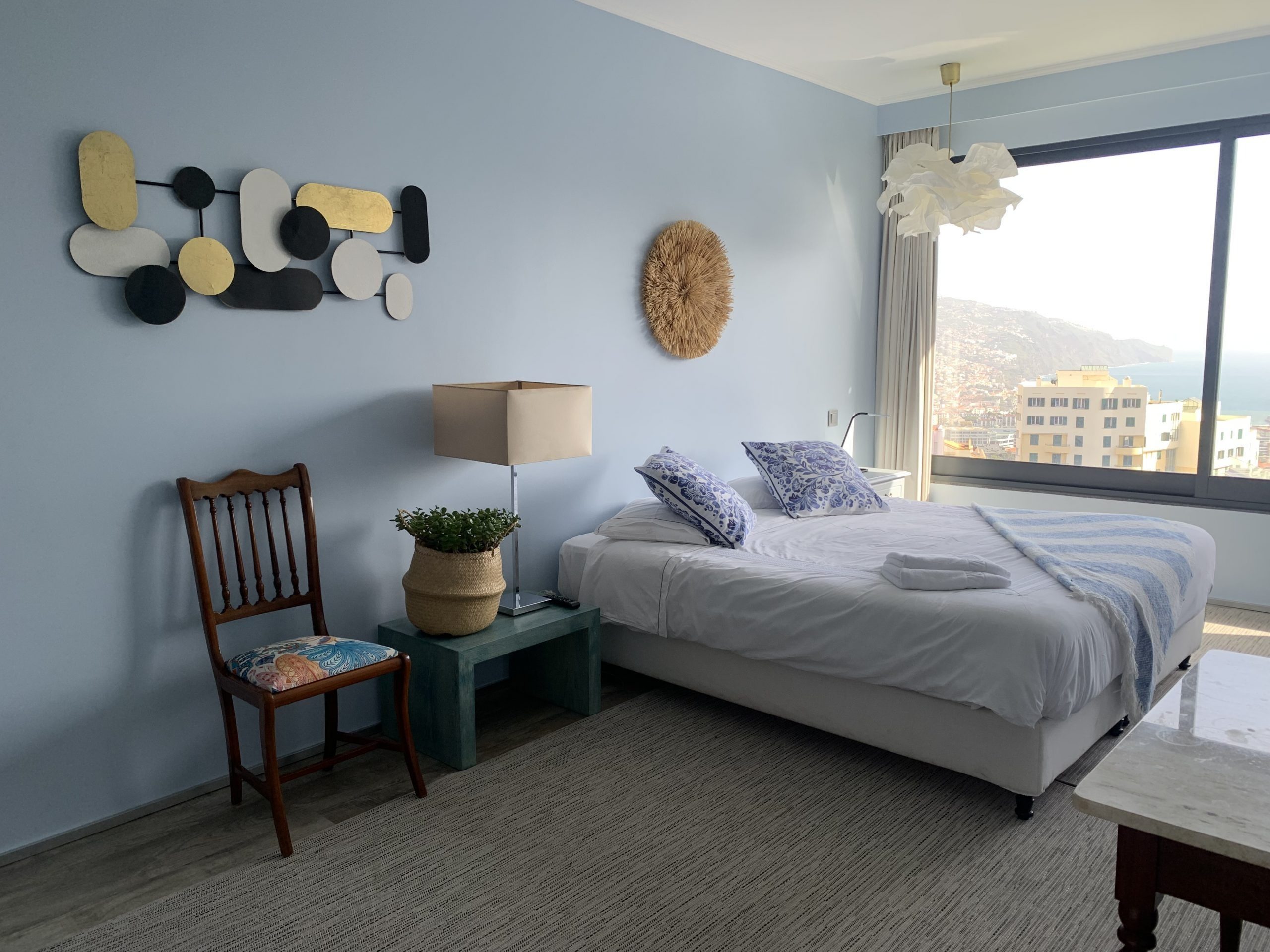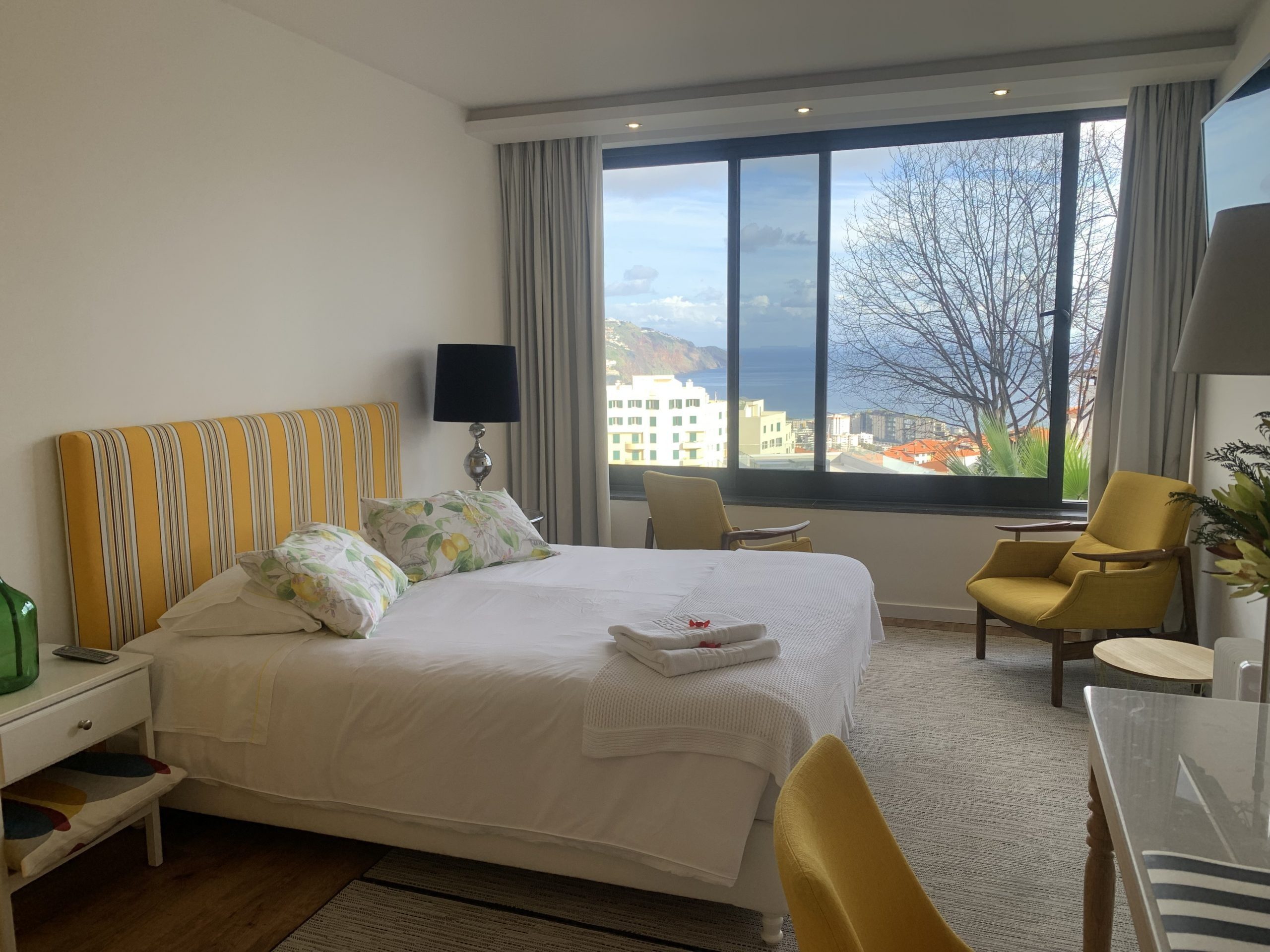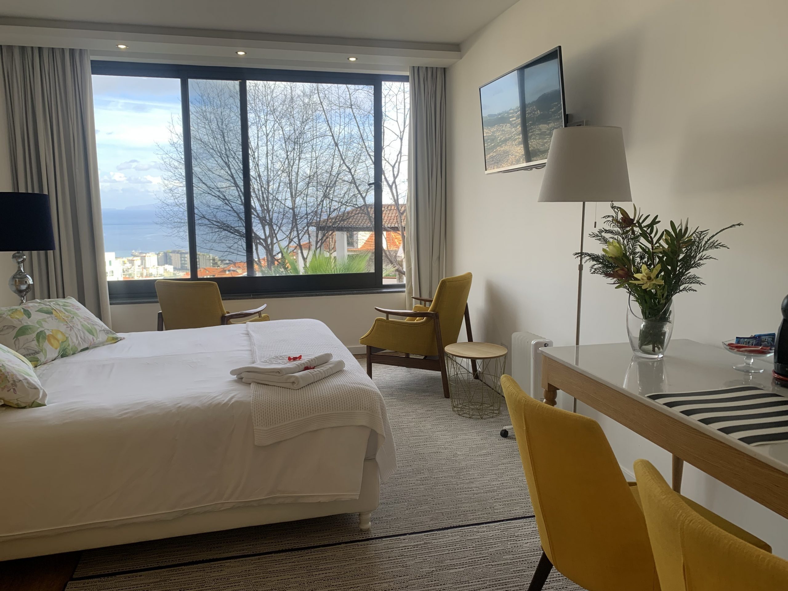 This 80 sq metres apartment is very bright and spacious. It has direct access to the garden and a superb view over Funchal and the ocean. Living room, kitchen, bathroom with walk-in shower and a separate bedroom with a queen size bed make this apartment ideal for all our guests and very popular for long stays.