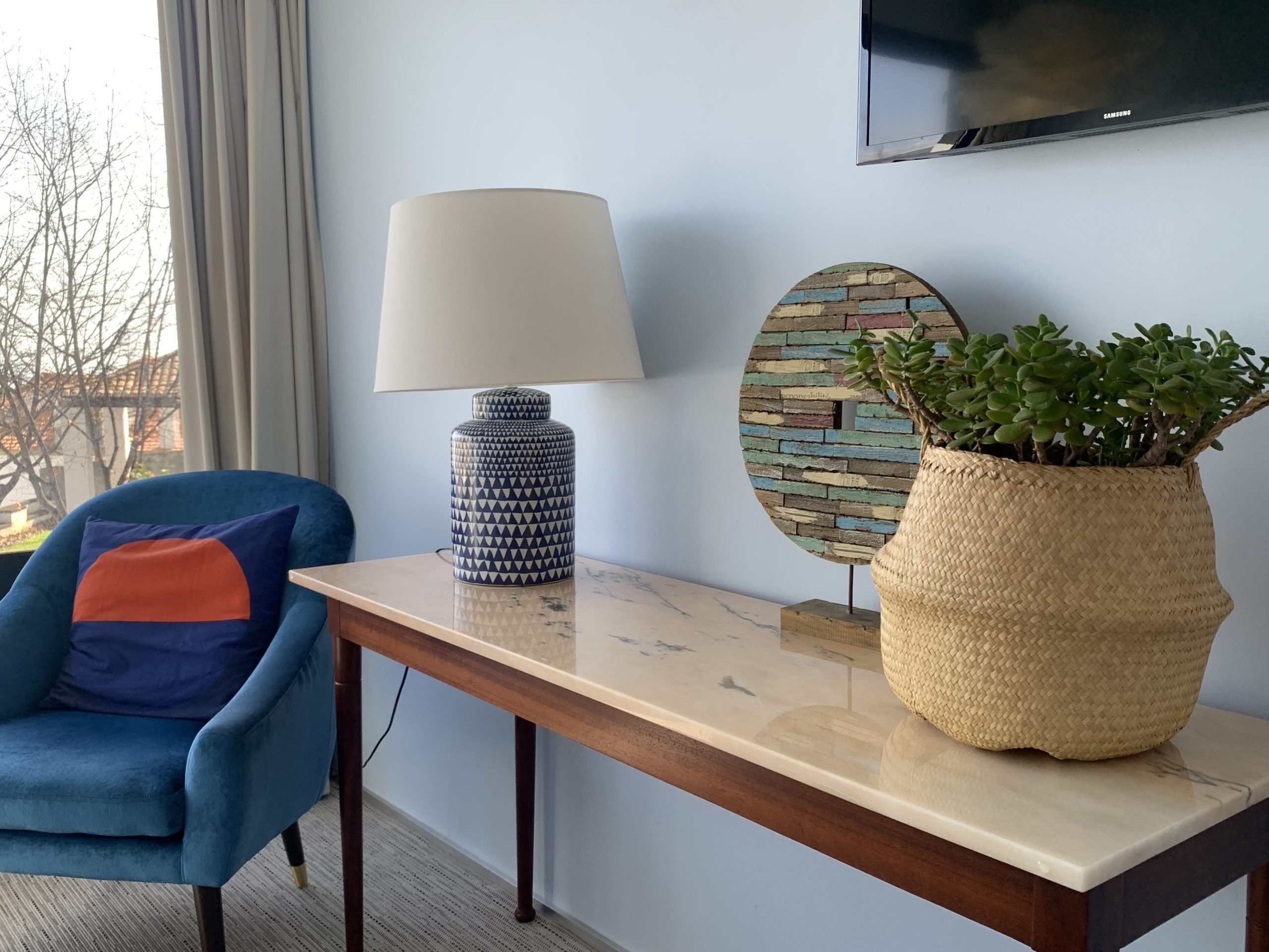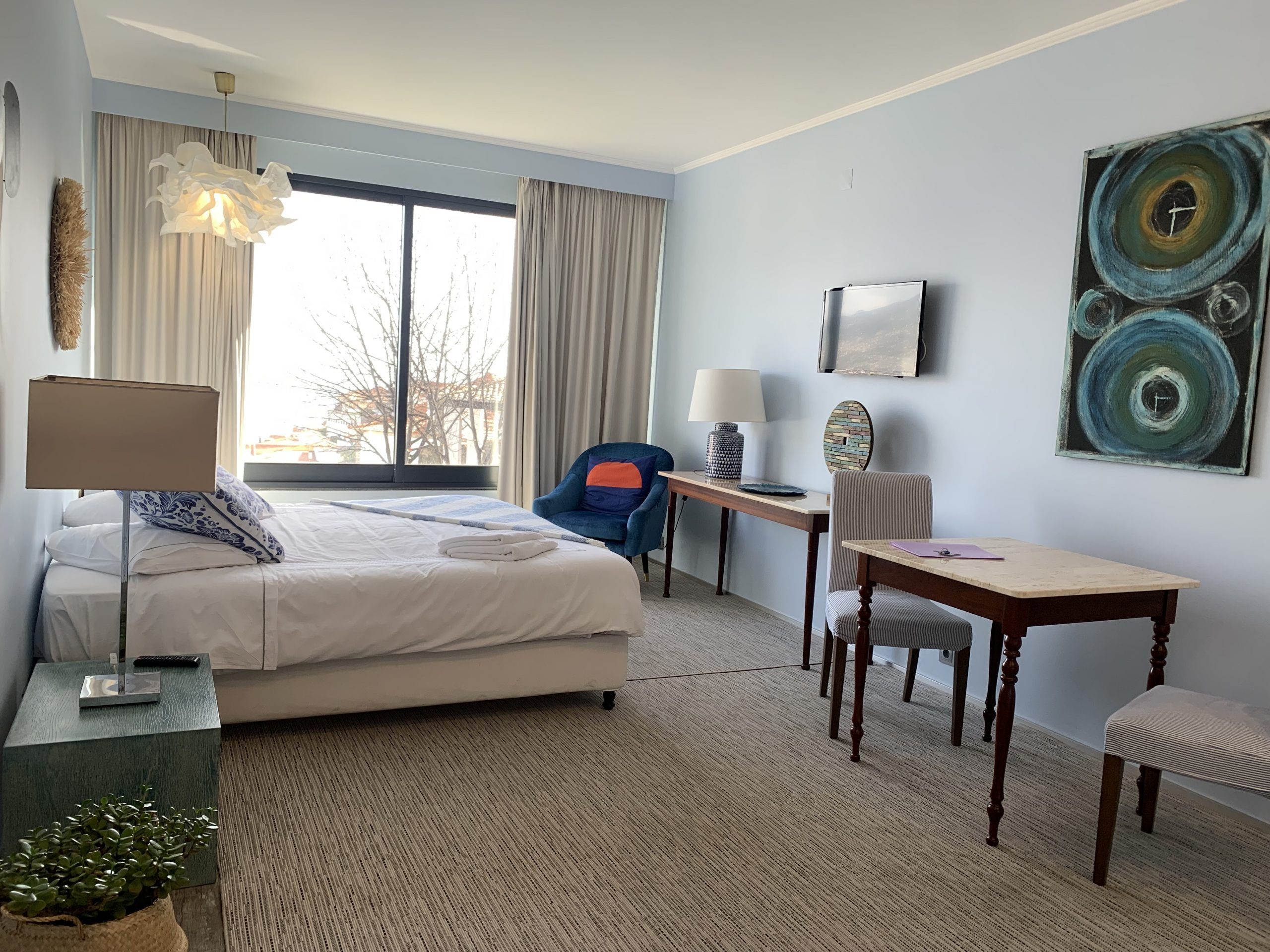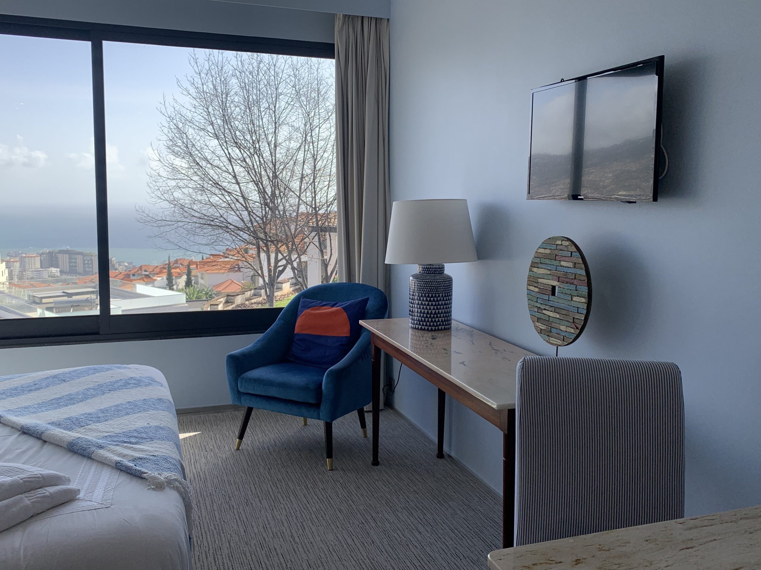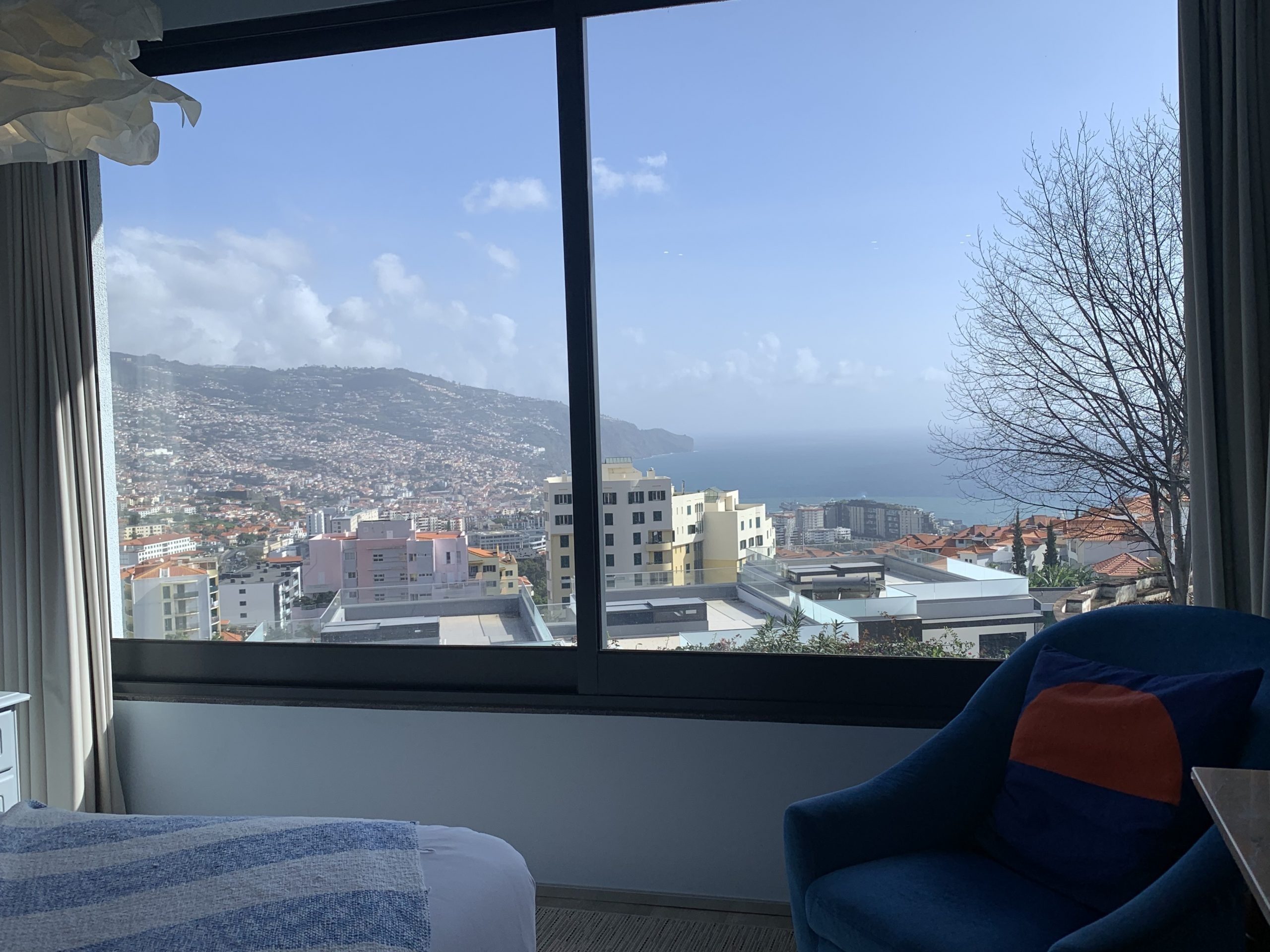 This 80 sq metres apartment is very bright and spacious. It has direct access to the garden and a superb view over Funchal and the ocean. Living room, kitchen, bathroom with walk-in shower and a separate bedroom with a queen size bed make this apartment ideal for all our guests and very popular for long stays.